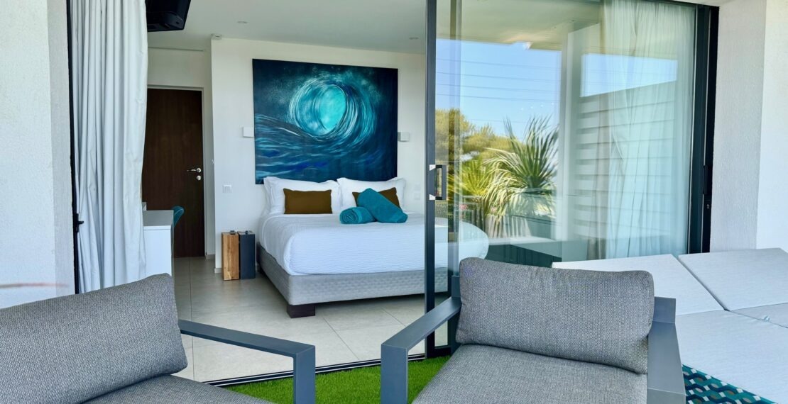 La chambre Minérale d’une surface totale de 17m² possède une terrasse privée végétalisée de 20m² avec vue mer panoramique.